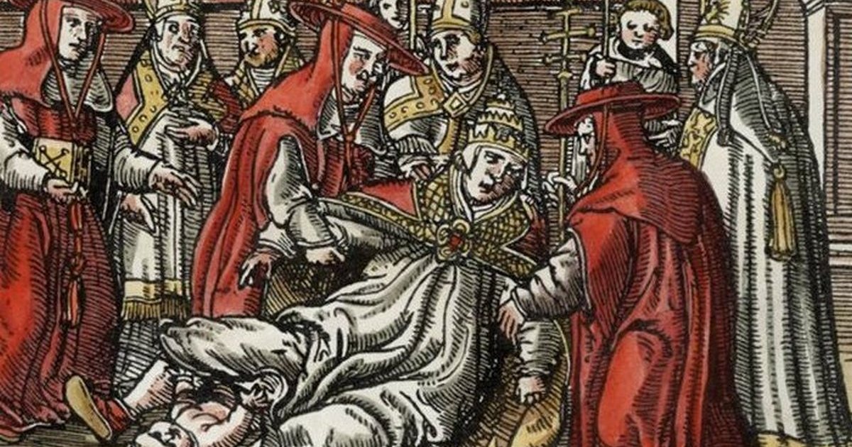 Став послушником в одной из церквей, девушка сначала заняла должность нотариуса папской курии, затем ее избрали кардиналом, а после – понтификом. По версии хрониста Жана де Майи, девушка была в положении, и разрешилась от бремени, упав с коня во время одной из церемоний.