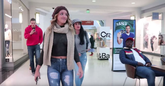 Художница, занимающаяся боди-пейтингом, решила провести эксперимент, задействовав девушку модельной внешности. Оставив модель почти полностью обнаженной, ей просто нарисовали одежду, оставив для "маскировки" только объемный шарф и берет. В таком виде девушка отправилась в один из торговых центров, и то, как на нее реагировали другие посетители, можно увидеть в видеоролике.