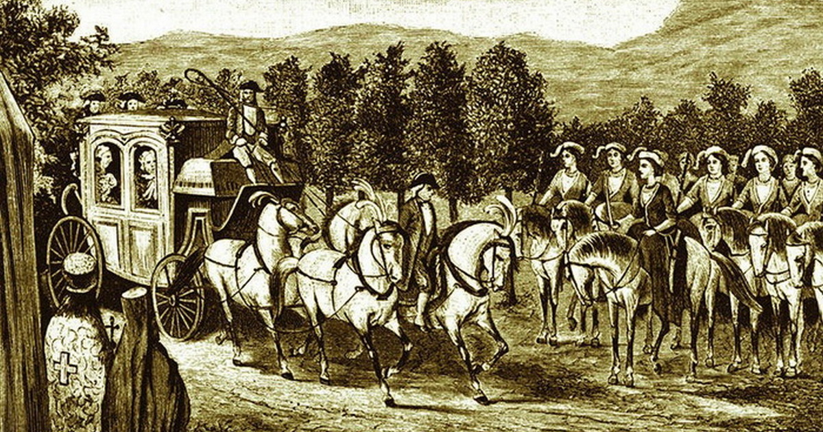 2 января 1787 года императорский поезд тронулся в путь, растянувшись на целую версту. Всего отправлялись 14 карет и более ста двадцати саней и кибиток, а кроме них – около сорока запасных. Екатерина II занимала огромную карету, запряженную четырьмя десятками лошадей: внутри размещались гостиная, библиотека, кабинет, карточный стол. Из-за внушительного веса экипажа на одном из крутых спусков, уже на территории Крыма, карета едва не опрокинулась – ее помогли удержать и остановить местные жители.