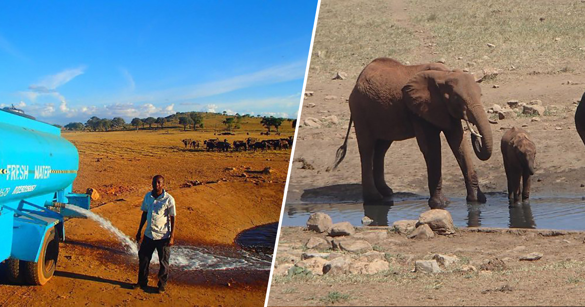 Спасение животных от засухи: мужчина ежедневно привозит воду в кенийский парк