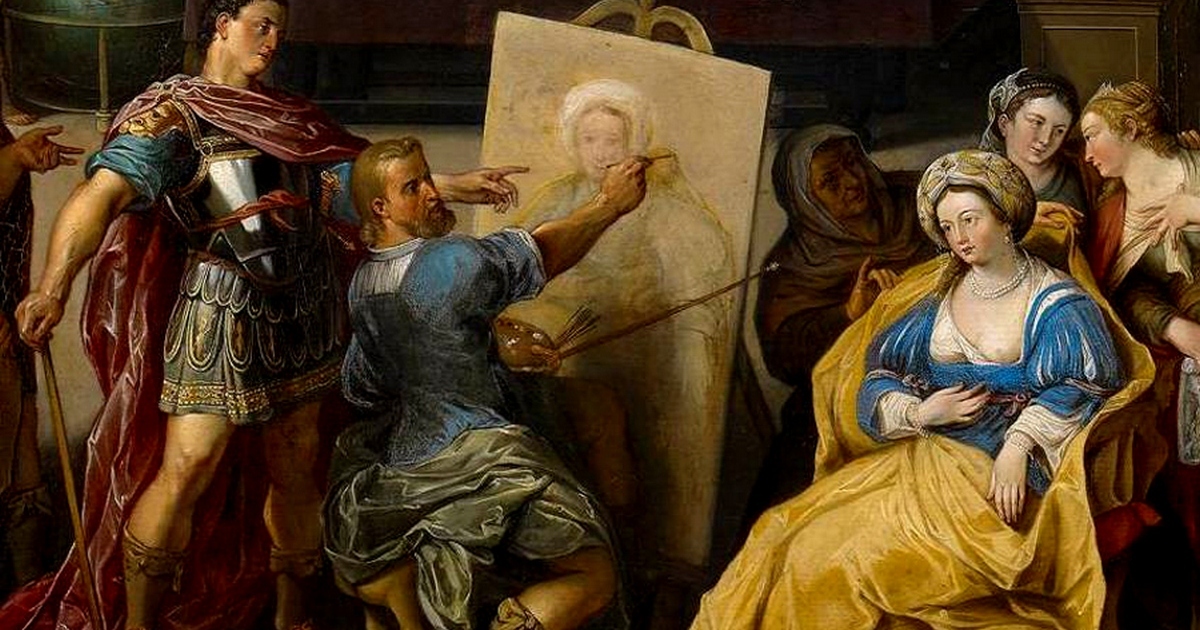Легенда о том, как македонский царь Александр Великий отдал свою любовницу художнику взамен на ее портрет, достаточно известна и много веков была излюбленной темой многих западноевропейских живописцев. А самым потрясающим своими размерам, замыслом и композиционным решением посвященным этой тематике вот уже около четырех столетий является уникальное творение фламандца Виллема ван Хахта.