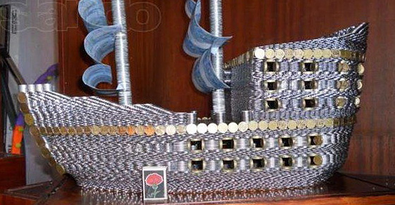 Несмотря на то, что украинская экономика переживает сейчас не лучшие времена, жители этой страны не теряют оптимизма и верят, что любой кризис можно преодолеть. Например, Сергей Кнуров из Николаева, предпочитает вкладывать деньги в искусство в прямом смысле этого слова. Находчивый украинец сконструировал модель корабля из 17 тысяч монет различного номинала, а в качестве парусов использовал пятигривневые банкноты.