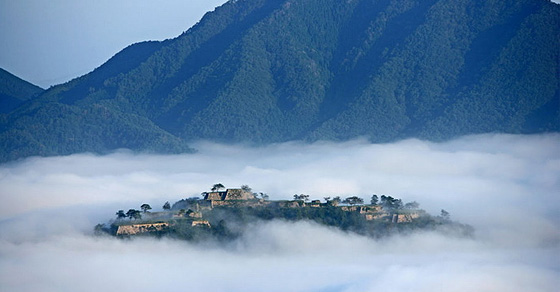 Японский замок Такеда – одна из интереснейших достопримечательностей древней архитектуры. Расположенный на вершине 300-метровой горы, буквально парящий в облаках, он поражает воображение туристов.