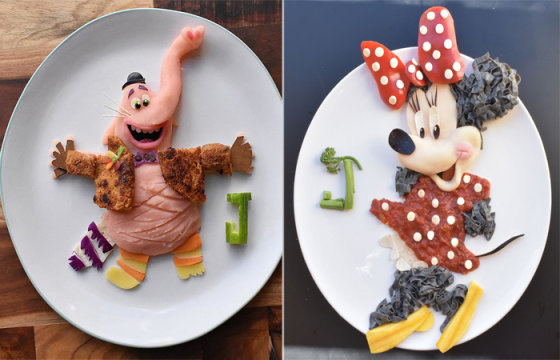 Пока одни заботливые родители развлекают своих детей во время еды мультфильмами по телевизору в попытке заставить малыша съесть хоть что-то, другие просто покупают красивые тарелки с изображением любимых героев, в надежде на то, что чадо с удовольствием слопает приготовленную кашу. А художница Лалех Мохмэди (Laleh Mohmedi) нашла креативный выход из сложившейся ситуации, она готовит для своего четырёхлетнего сыночка Джейкоба завтраки, обеды и ужины в виде мультяшных персонажей, не подозревая о том, что подобное в считанные дни станет огромной популярностью.