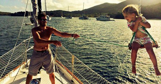 Семейная пара, которая воспитывает своих маленьких детей на паруснике в Карибском море.
