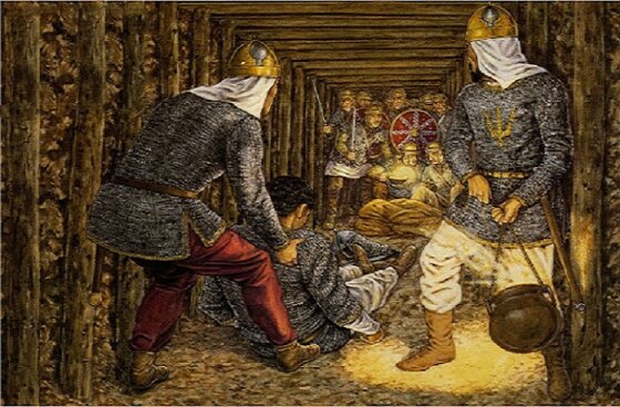 Враги набрасывались друг на друга с короткими кинжалами и ножами при свете тусклых факелов. Начиналась настоящая резня, в которой с обеих сторон гибли десятки и сотни воинов. Довольно часто подобная подземная атака заканчивалась ничем – трупы убитых и умирающих от ран полностью перекрывали проход в подземной галерее.
