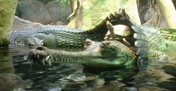 Черепаха оседлала крокодила, в зоопарке в Праге, Чехия.