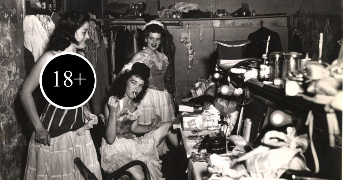 Шоугёлз в раздевалке бурлеск-клуба в Новом Орлеане, 1950 год. Автор: Arthur Fellig (Weegee).