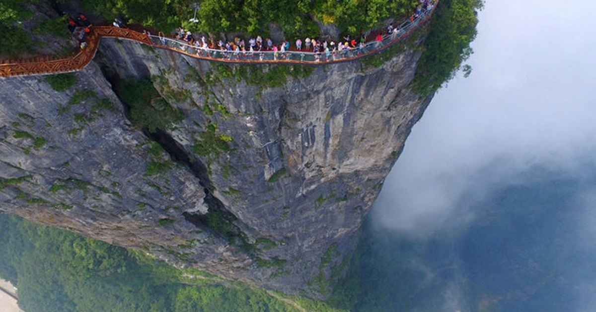Туристы проходят смотровую площадку в Чжанцзяцзе, провинция Хунань, Китай.