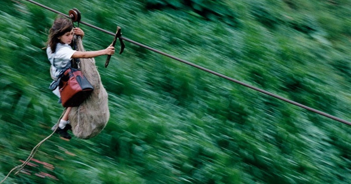 Некоторым выходцам из семей, обитающих прямо в джунглях Колумбии, приходится ежедневно добираться до школы по стальным тросам, расположенных в 400 метрах над грохочущей рекой Рио Негро. Длина этих тросов достигает 800 метров, и скользя по ним, дети развивают скорость до 80 километров в час.