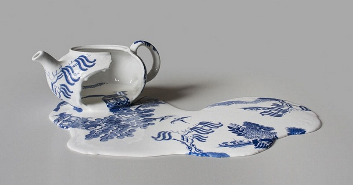 Посуда бьется на счастье. А если она не бьется, а плавится? Этот вопрос можно задать художнице Livia Marin, которая создала целую коллекцию расплавленной посуды. Причем фарфоровые лужи украшены красочным рисунком, что подчеркивает необычность экспонатов.