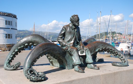 Жюль Верн, сидящий на гигантском кальмаре. Испания. Виго. Около здания Мореходного клуба.