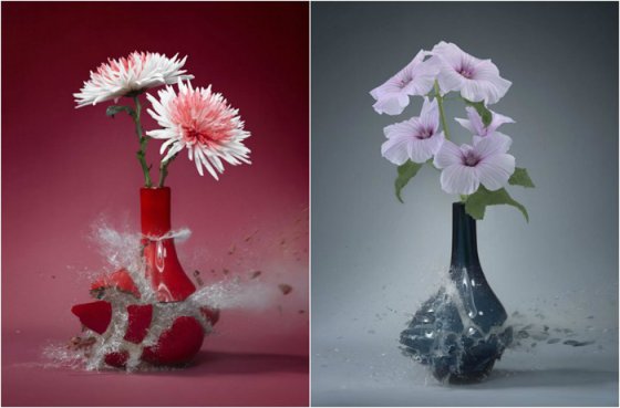 Невероятно зрелищная фотосерия взрыва цветочных ваз с помощью техники высокоскоростной съемки.
