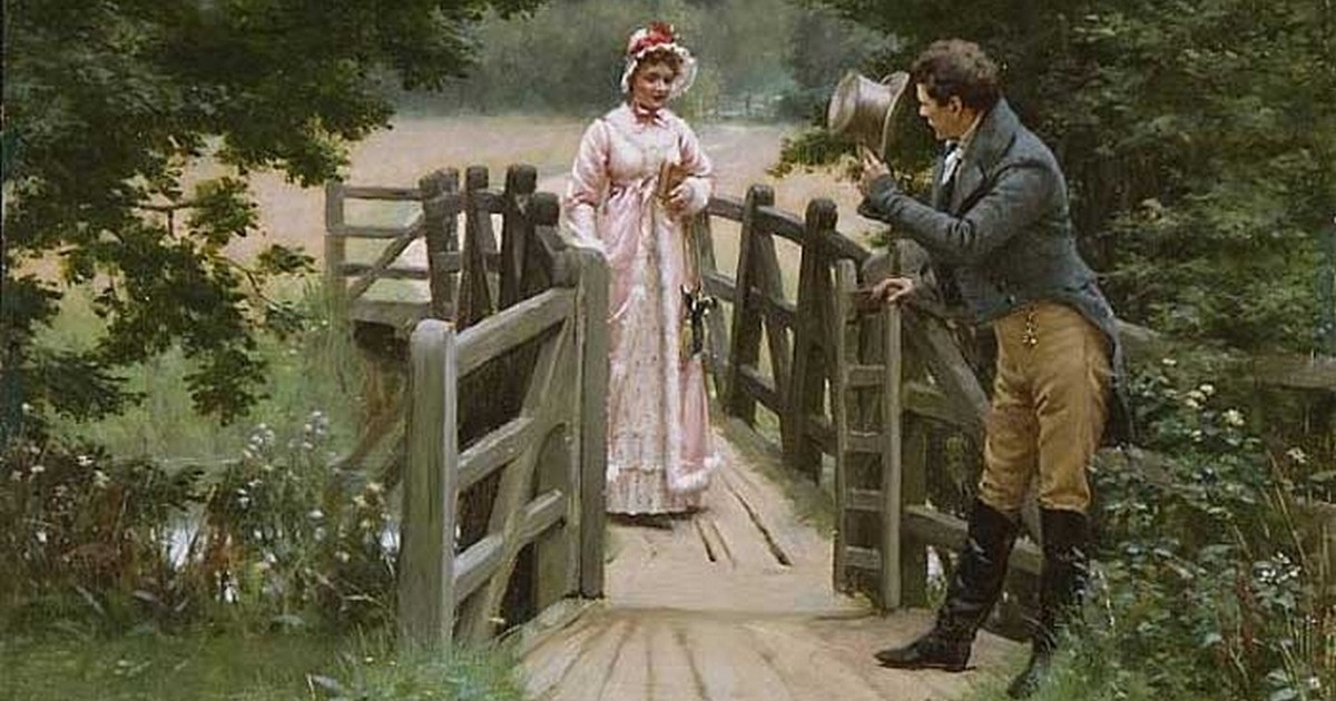 Если женщина шла одна, мужчина обязательно кланялся. Если с кем-то ещё, ждал её разрешения. Картина Эдмунда Блэра Лейтона.