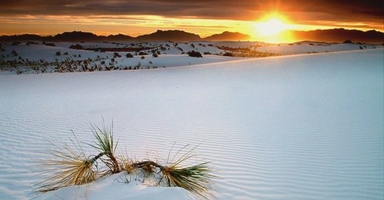 Вселенная щедра на сюрпризы, особенно те, которые мы называем чудесами природы. Таким чудом можно назвать и White Sands, единственную в мире пустыню с "вечным снегом": белым песком, похожим на измельченный фарфор, мел или гипс. Находится она в Нью-Мексико (США), на высоте 1291 м над уровнем моря, в долине Тулароза, окруженной горами Сан-Андрес и Сакраменто. Пустыня White Sands National Monument является национальным памятником США и занимает огромную территорию свыше 710 кв. км.