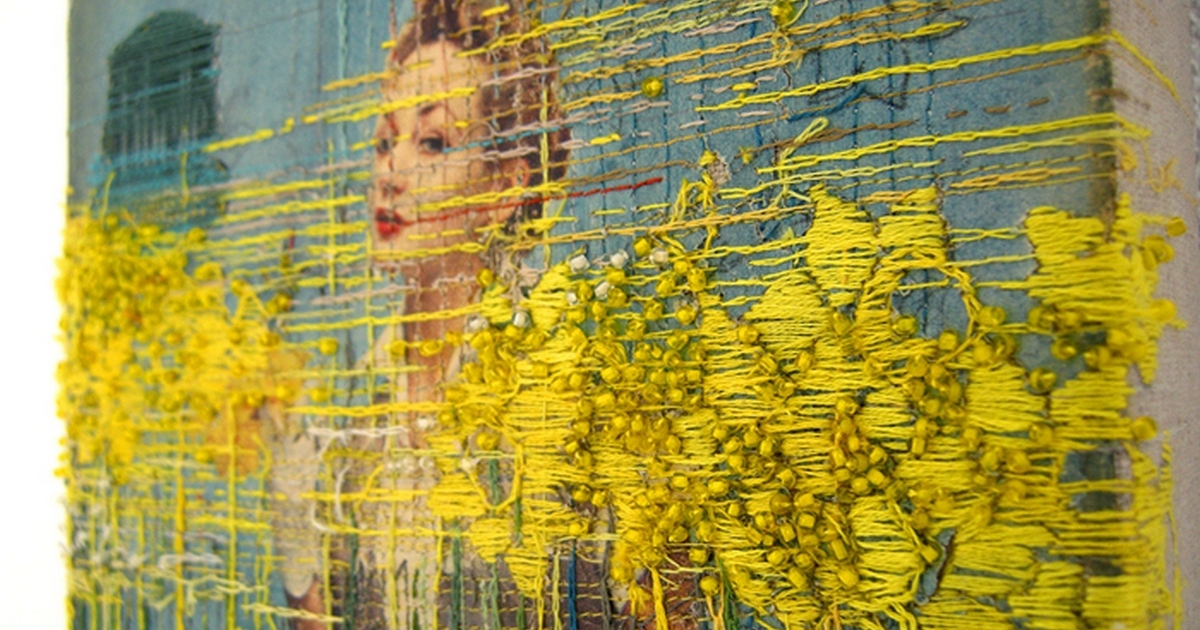 Художница из Амстердама собирает ретро-фотографии и украшает их вышивкой, бисером и кружевами. Необычная обработка добавляет снимкам гламура - в результате старинные рекламные фото становятся более яркими и эффектными.