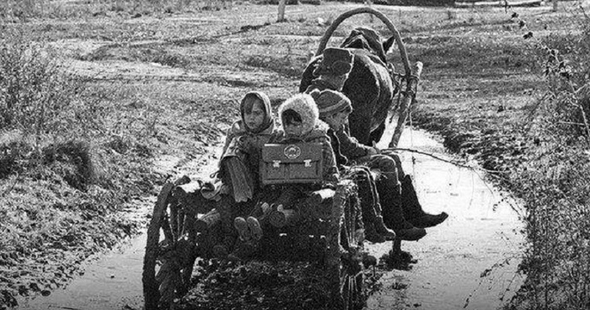 Дорога в школу. СССР, Брянская область, 1989 год.