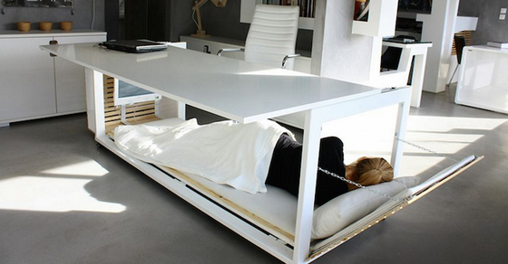 Наконец-то! Этого решения для интерьера ждали миллионы офисных работников. Каждому, кому приходится по 8 часов находиться в помещении и работать за компьютером, рано или поздно приходит идея, что иметь кровать на работе - не такая уж и плохая идея. Studio NL сделала эту фантазию реальностью!