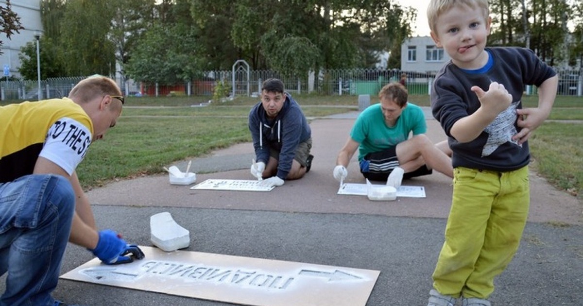 Помочь нанести предупреждающие знаки Дмитрий предложил самим жителям города, бросив клич в социальной сети. И, надо сказать, волонтеров нашлось немало. За работу взялись и взрослые, и дети.