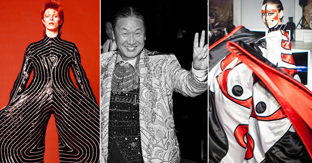 Для тура Ziggy Stardust Дэвида Боуи Ямамото разработал не просто гардероб – целый сценический образ. Туда вошел космический виниловый «скафандр» с дутыми штанами и серебряными полосками, в действительности вдохновленный костюмами самураев, кейп с иероглифами, откровенные трикотажные комбинезоны… У Дэвида Боуи и его альтер-эго, Зигги Стардаста, Ямамото учился создавать впечатляющие шоу, а сам научил музыканта мгновенно перевоплощаться на сцене, рассказав о старинной технике актеров кабуки – хаягавари.
