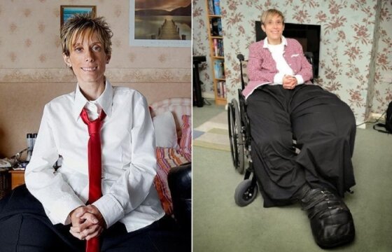 Если посмотреть на портретное фото 48-летней Мэнди Селларс, вы увидите симпатичную худенькую женщину со стильной стрижкой. Но нижняя часть ее тела, увы, выглядит пугающе. Дело в том, что ноги британки Мэнди имеют гигантские размеры. А всё – из-за генетической мутации. Впрочем, женщина не унывает и научилась радоваться жизни даже с такими серьёзными проблемами. Более того, она помогает другим обладателям гигантских ног из разных стран. Ведь с такой аномалией непросто сохранять оптимизм.