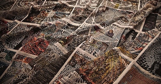 Мириам Дион – студентка кафедры изобразительного искусства и информационного дизайна Университета Квебека. Работая со старыми выпусками газет «Financial Times», «The International Herald Tribune» и «Le Devoir», она вырезает из бумаги затейливые, напоминающие старинное кружево, узоры. Скрепленные в полотна, способные покрыть целую стену, страницы газет становятся похожи на образцы сложного дизайнерского текстиля.