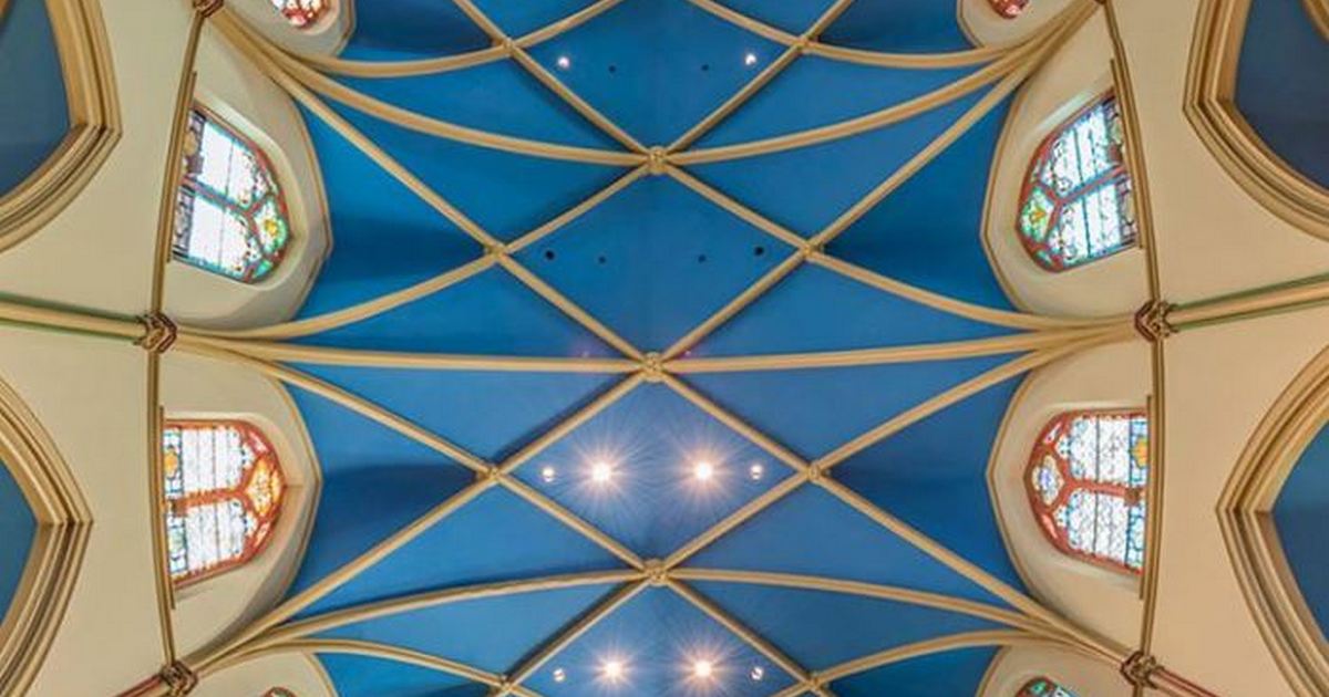 Потолок собора в Мумбаи. Фрагмент вертикальной панорамной фотографии.