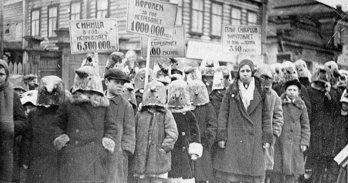 Демонстрация в защиту полезных птиц. СССР, 1934 год.