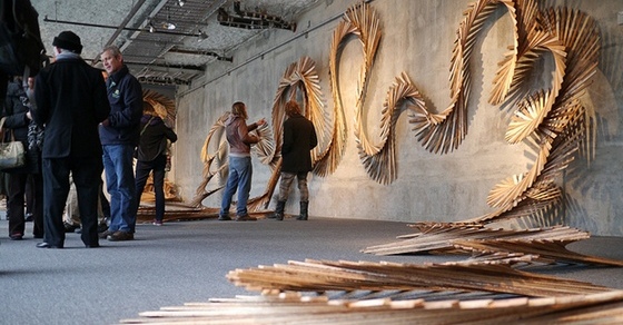 Калифорнийская художница, скульптор, а по совместительству еще и производитель мебели, Барбара Холмс подготовила оригинальную пятидесятиметровую инсталляцию в виде змеи, состоящей из тонких древесных планок. Примечательно, что все материалы были найдены Холмс на городской свалке.Барбара назвала свое творение незамысловато – «Без названия № 5» (Untitled No. 5).