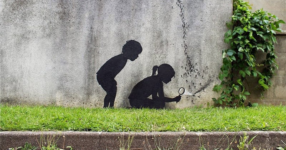 На другой работе испанского художника двое детей увлечены экспериментом с увеличительным стеклом, пытаясь поджечь муравьев солнечными лучами. Жестокая игра, столь популярная среди детей, познающих мир, становится еще более неоднозначной, ведь при ближайшем рассмотрении муравьи на стене оказываются маленькими человечками.
