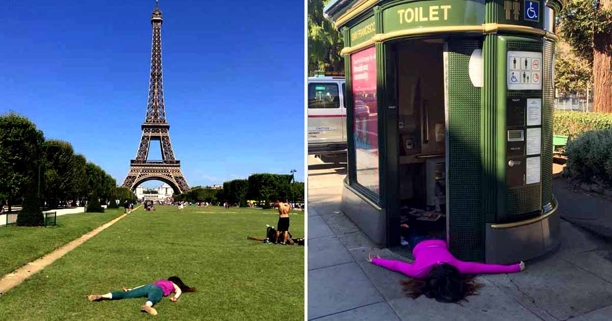 Stefdies: художница протестует против селфи, притворяясь мертвой в людных местах