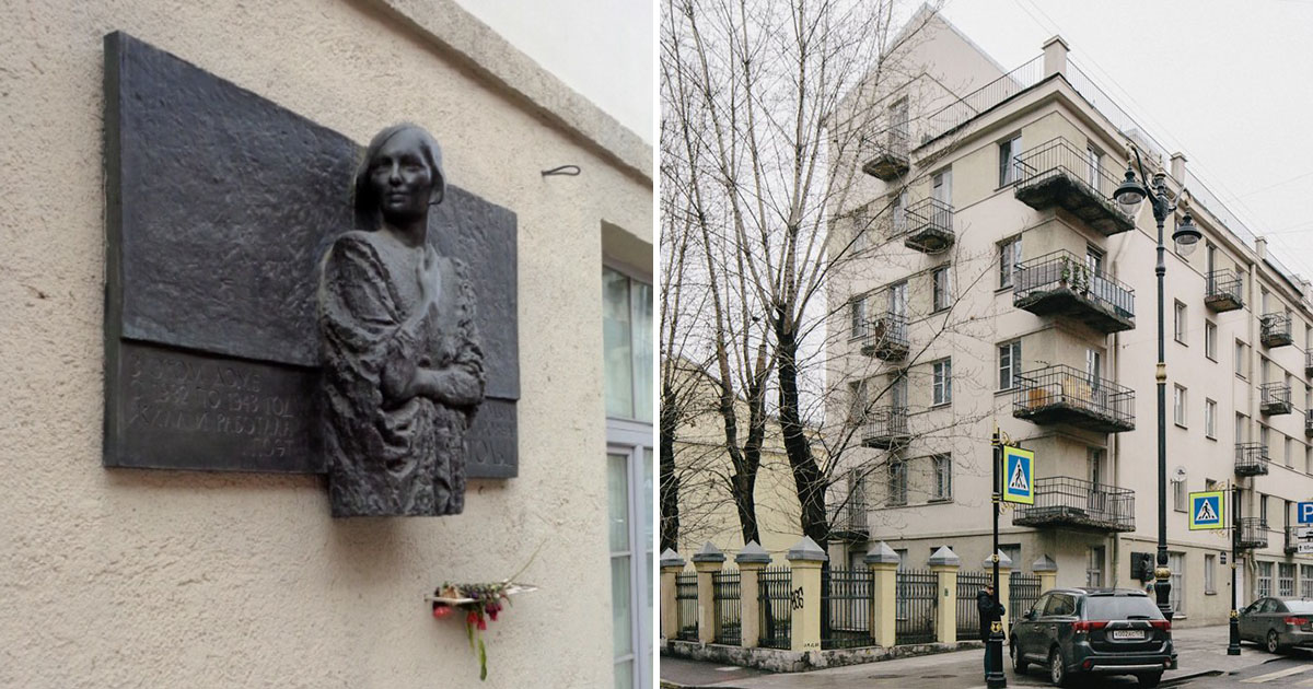 Мемориальная доска в честь Ольги Берггольц на стене дома. / Фото:Фото:palmernw.ru, М.Гуминенко