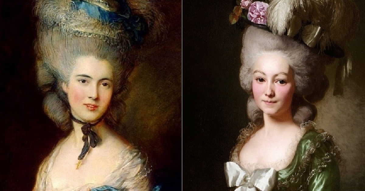 В эпоху Галантного века мода на туалеты и прически у аристократов менялась каждое десятилетие. Если в 1730-е годы волосы зачесывались к макушке и ниспадали локонами, то в 1770-м дамы носили у себя на голове невероятной высоты конструкции. В России эти творения имели весьма забавные названия: «Рог изобилия», «Шишак Минервин», «По-драгунски».