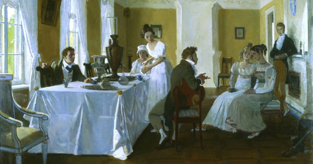 Пушкин в гостях у семейства Осиповых-Вульф в Тригорском. Автор: Дмитрий Белюкин.