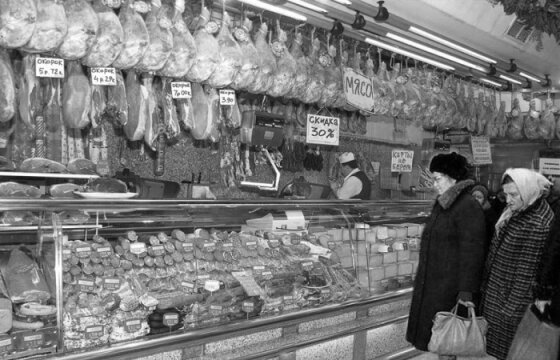 Цены на продукты питания регулировались государством и повышались крайне редко, примерно раз в 10 лет, но такая стабильность существовала на фоне тотального дефицита и отсутствия ассортимента. Один килограмм говядины стоил 1 рубль 80 копеек, но на витринах мясных отделов мяса было не найти, не говоря уже о свежих фруктах, которые многие жители СССР не видели годами. Лишь к Новому году в крупных гастрономах иногда «выбрасывали» мандарины, которые стоили 2 рубля 40 копеек, и за ними выстраивались огромные очереди. Однако «по блату», с «черного хода» магазина их можно было приобрести в любое время, но доступно это было далеко не каждому.