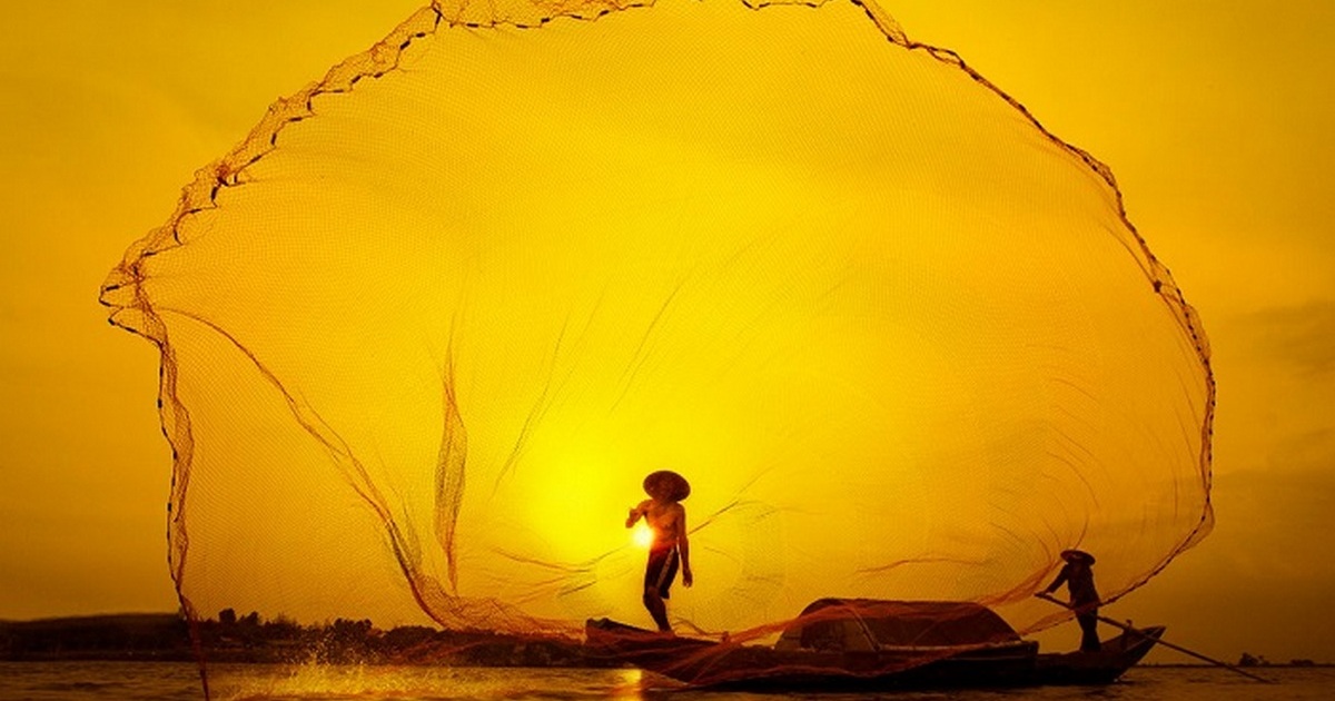 Рыбак закидывает сеть на закате солнца. Фотограф: Туан Нгуйен Манх (Tuan Nguyen Manh).