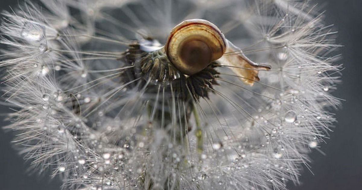 Улиточка на одуванчике. Москва. © Полина Серова