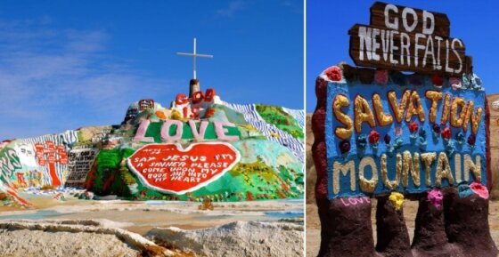 На заброшенной военной базе в калифорнийской пустыне есть ошеломляющий объект, который, если смотреть с высоты, выделяется ярким пятном среди песков – это Гора Спасения. Возвел ее в конце прошлого века один творческий человек, мечтой которого было распространить среди людей принципы мира, добра и любви к Богу. Посмотреть на это грандиозное творение приезжают туристы из разных уголков Америки и даже из других стран. Кто-то поднимается на гору или делает селфи. Но есть и те, кого этот удивительный арт-объект заставляет задуматься о ценности человеческой жизни и хрупкости мира.