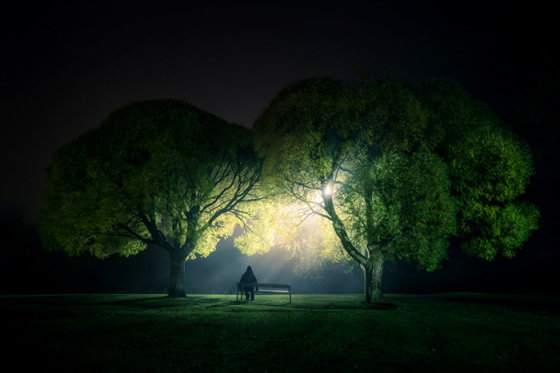Еще одним фотографом, очарованным ночью, является Пол Томпсон, однако он снимает свои кадры совершенно по-другому. Британский фотограф полагается на случай, и снимает в кромешной тьме на длительной выдержке, и то, что в итоге получается, для него тоже является сюрпризом.