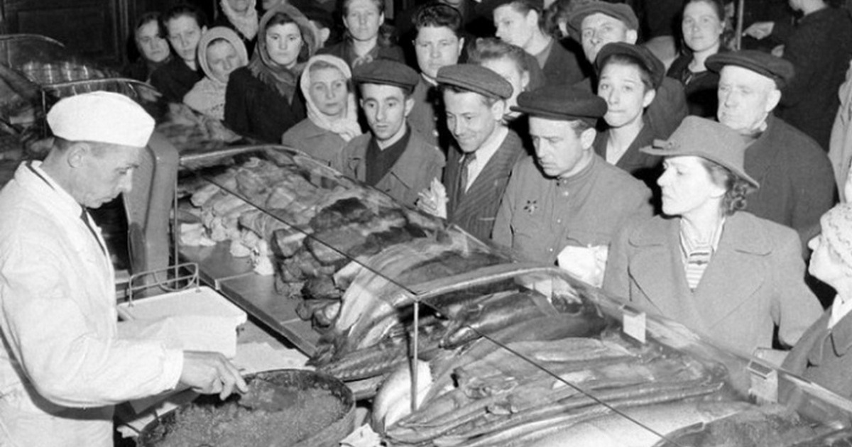 Рыбный отдел Елисеевского гастронома, Москва, 1947г.