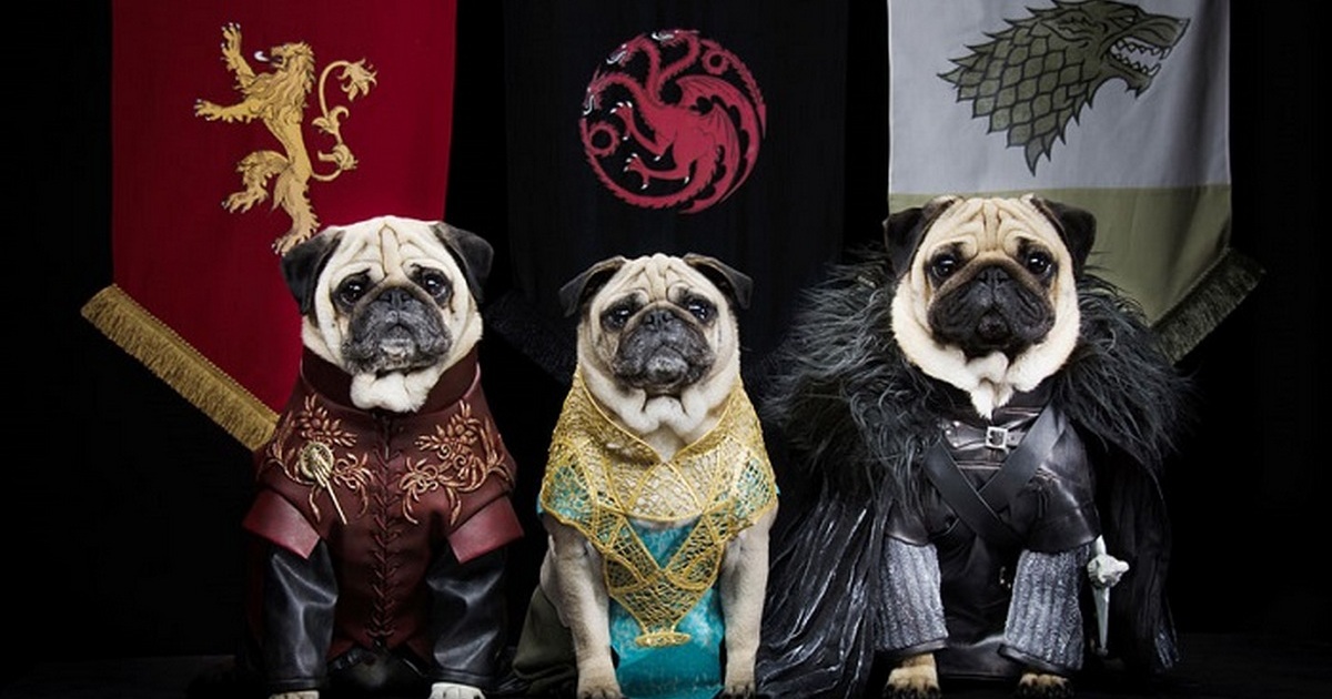 Вот уже несколько лет телесериал в жанре фэнтези «Игра престолов» (Game of Thrones) не теряет своей популярности. Существует много подражаний, связанных с сюжетом и героями фильма. Помимо всего прочего, в интернете появились фотографии троих очаровательных мопсов, выступающих в роли главных героев популярной телеэпопеи.