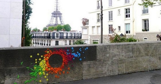 В один прекрасный день стены Парижа покрылись словно красочными, яркими цветами, внезапно распустившимися на бетонной или кирпичной поверхности городских строений. Это стартовал арт-проект французской художницы, который представляет собой разноцветные геометрические узоры-инсталляции, сформированные из множества маленьких фигурок-оригами. Мадемуазель Морис составляет свои "граффити" так, чтобы получить плавный градиент из ярких красок, поэтому издалека не сразу понятно, что именно так пламенеет на стене или заборе. Любопытные прохожие стремятся рассмотреть необычный объект поближе, а когда видят, что это узор из десятков, а то и сотен крошечных бумажных фигурок, невольно начинают улыбаться. А значит, с задачей дарить своим творчеством позитив, доброту и улыбки художница справилась на отлично.