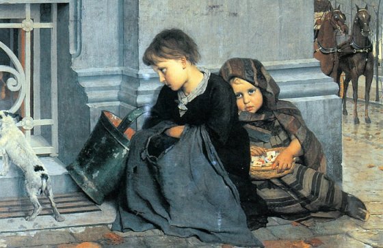 Многие лоточницы на английских улицах были ирландскими девочками. Картина Августуса Эдвина Малреди.