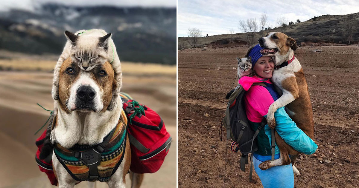 Очаровательные фотографии собаки и кота, которые ходят в походы со своими хозяевами