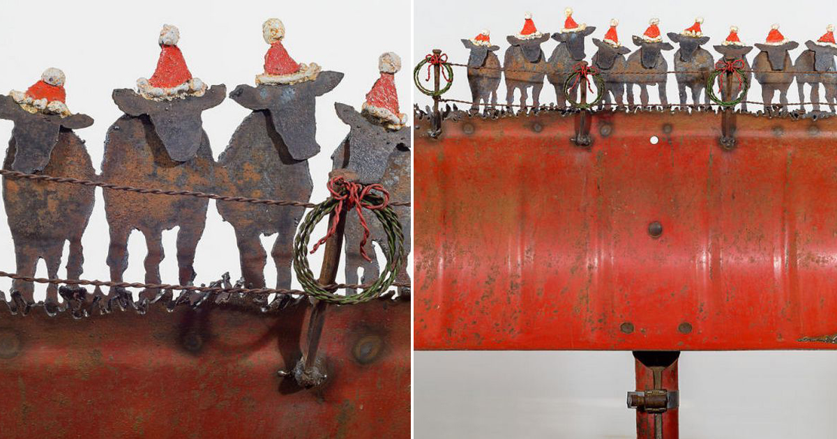 Например, старая снегоуборочная лопата была использована для создания сценки из коллекции, посвященной зимней теме.