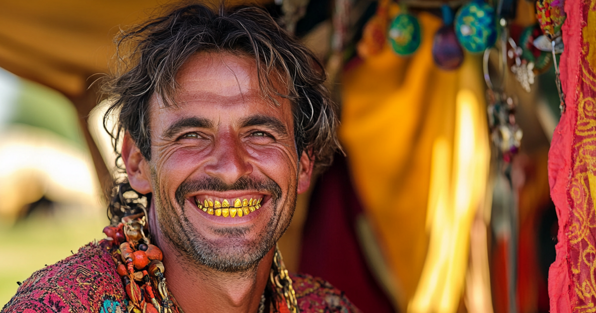 Поэтому цыганки украшали себя золотыми украшениями, а мужчины носили кожаные пояса, в которые можно было спрятать мелкие ценности. Но одним из самых необычных и ярких символов цыганской культуры стали золотые зубы. Это не только был способ сохранить ценности при себе, но и, согласно поверьям, возможность притянуть богатство. Да и потерять такой зуб было куда сложнее, чем другие драгоценности.
