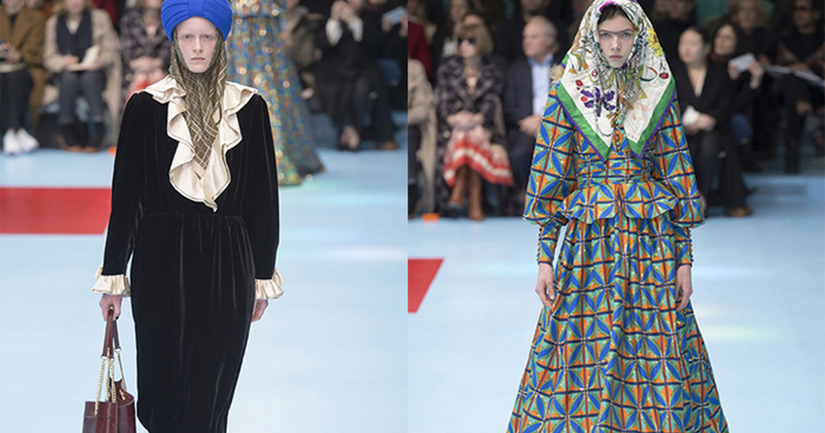 Реклама Gucci и модель на одном из первых показов Микеле.