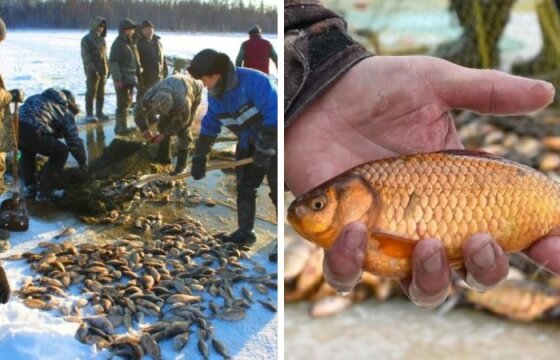Когда наступала зима и вода на озерах промерзала достаточно глубоко, все физически активные жители деревни собирались вместе и устраивали коллективную подводную ловлю карася, складывали улов в одно место, а затем делили его на всех жителей деревни.