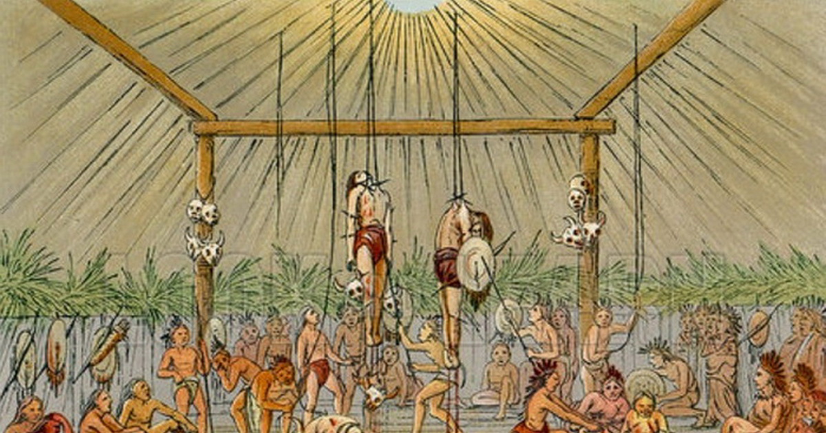 Стоит ли говорить, что, страдая от нечеловеческих мучений, они в кровь кусали язык. Многие быстро теряли сознание, истекали кровью и так висели достаточно долгое время. Верховный жрец племени решал, сколько времени необходимо на то, чтобы "стать мужчиной", и в нужный момент позволял опустить тела. Когда те оказывались на земле, их ждало еще одно испытание: два крепких воина брали в руки кожаные ремни, которые были привязаны к телу, и начинали бегать по кругу, увлекая за собой мученика.
