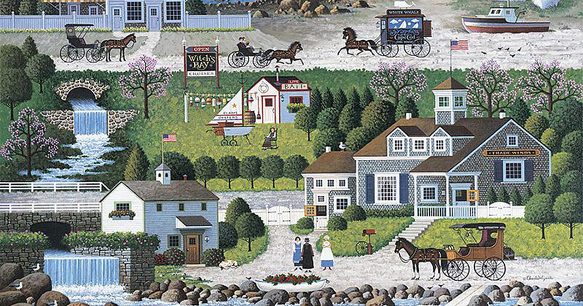 Российскому зрителю работы Чарльза Высоцки практически не знакомы - но у себя на родине он весьма знаменит. Будучи нашим современником, он создавал открытки и постеры, посвященные жизни первых переселенцев и фермеров Новой Англии. Уютные провинциальные городки, суровый, но радостный протестантский труд, шумные ярмарки и мирно дремлющие кошки... В его работах предстает целый мир, безвозвратно ушедший в прошлое - а может быть, никогда и не существовавший.